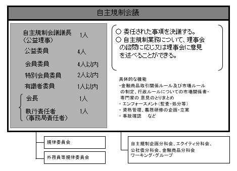 「自主規制会議」とは、本協会の自主規制に係る全般的な事項を決定する権限を持つ会議体です。
