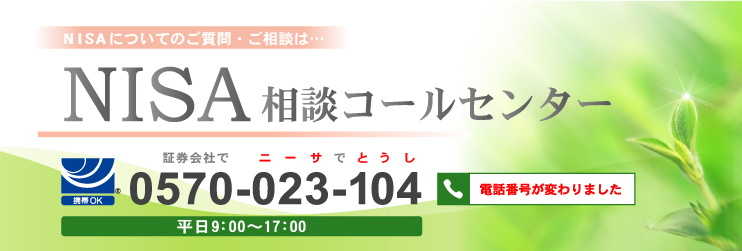 本協会では、個人からの「NISA」(少額投資非課税制度)についての質問・相談へ対応するため、「NISA相談コールセンター」を設置しています。